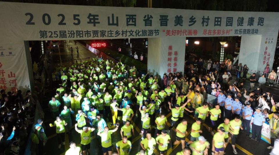 8月23日晚,2025年山西省晋美乡村田园健康跑暨第25届汾阳市贾家庄乡村文化旅游节“美好时代画卷 尽在多彩乡村”欢乐夜跑活动在贾家庄村举行。